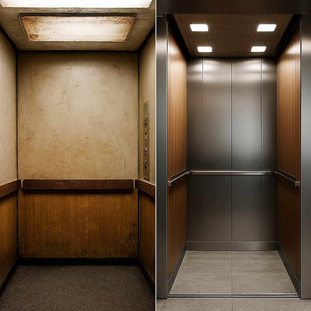 تخصص ما بازسازی آسانسور با ایمنی بالا، طراحی زیبا و هزینه‌ای مقرون‌به‌صرفه برای ساختمان شما.
